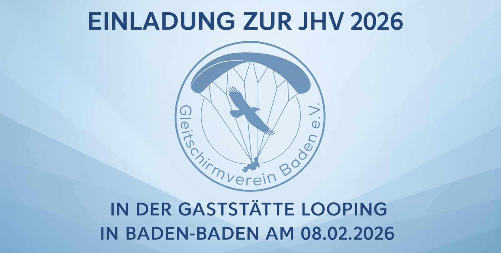 Zur anstehenden Jahreshauptversammlung am 08. Februar 2026 um 16:00 Uhr im Gasthaus „Looping“ in Baden-Baden/Oos am Segelflugplatz möchten wir euch hiermit entsprechend unserer Satzung form- und fristgerecht herzlich einladen.