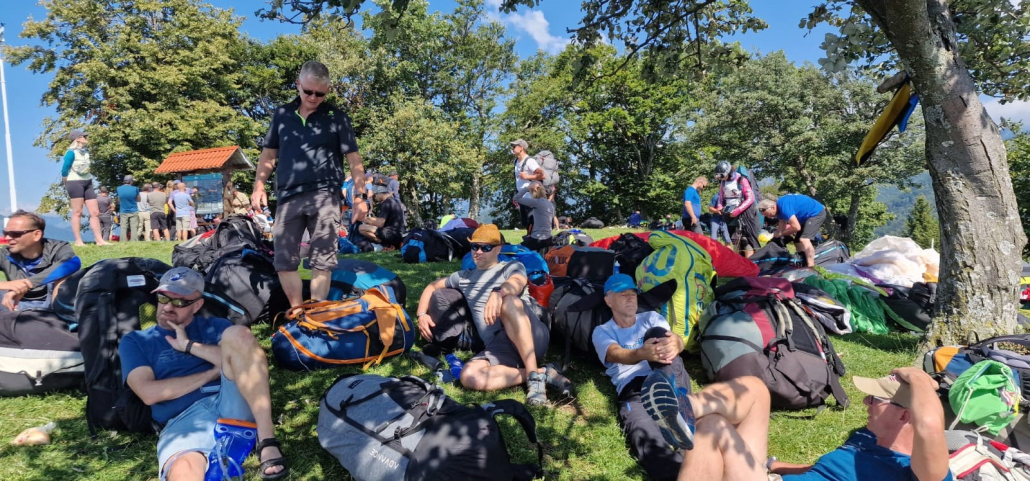 So auch dieses Jahr, im Jahr des Herrn Anno Domini 2023. In der dritten Woche des August traf sich eine große Schar, 28 an der Zahl, an tollkühnen Schirmlingen, um nach Slowenenland zu fahren und dem gemeinsamen Hobby, dem Fliegen mit Stofflappen und Schnüren, genannt Gleitschirm, zu frönen.